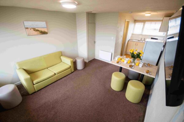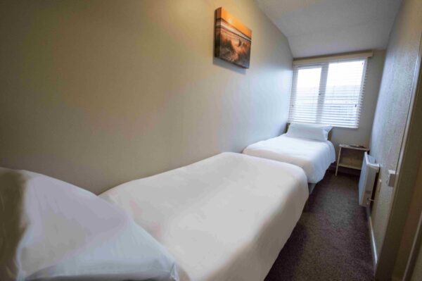 This 3 bedroom Chalet features 1 double bedroom, 2 twin bedrooms and a pull-out sofa bed for additional sleeping. An open-plan living area with kitchen, lounge, and dining area, plus a separate bathroom with shower only.