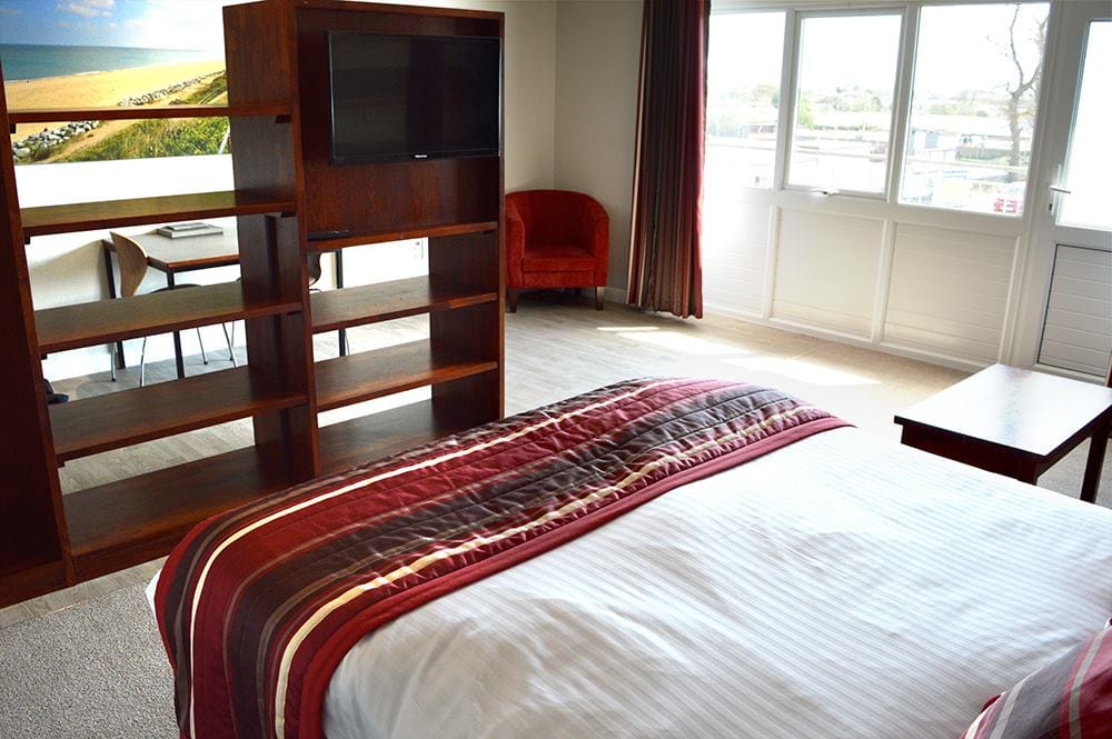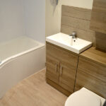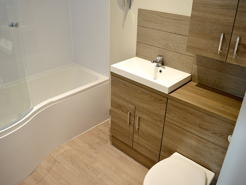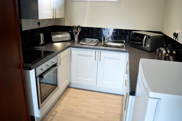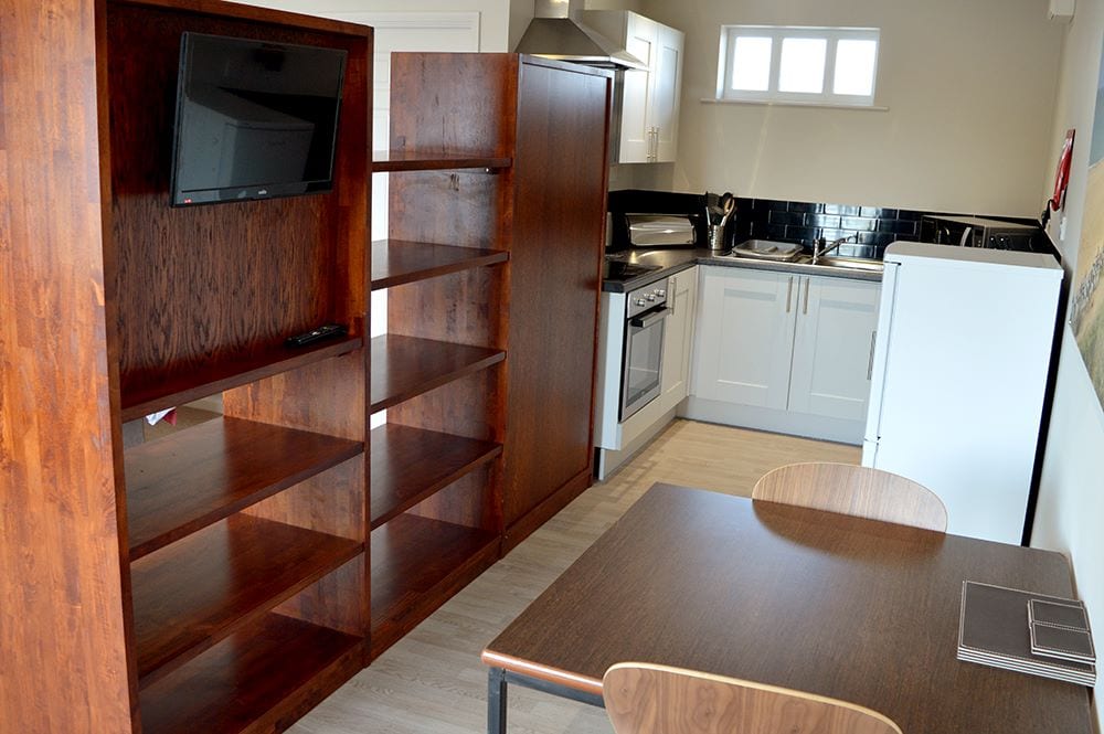 These Studio Apartments benefit from a modern kitchenette, a separate bathroom with a shower over the bath, and a double bed in the living room.