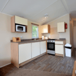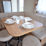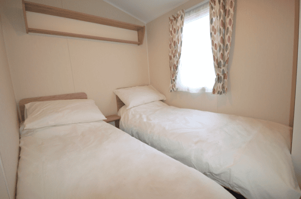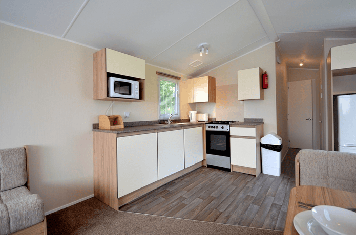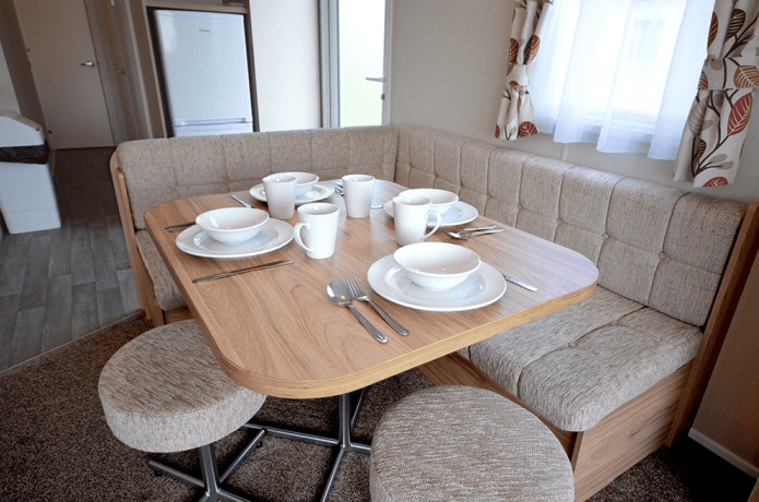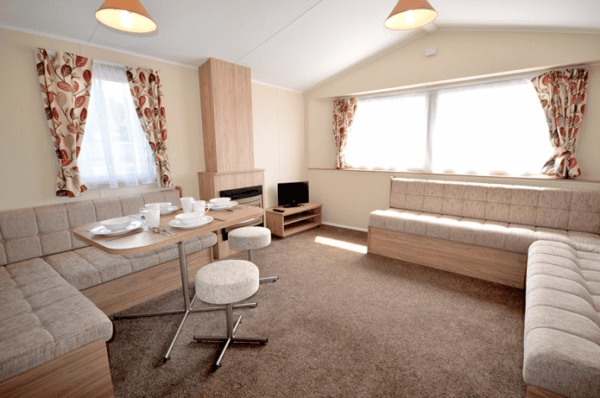 This 12-ft wide Caravan features a double bedroom, a twin bedroom and a fold-out sofa bed in the lounge. Plus a family shower room, a kitchen/diner, and a cosy living area with a gas fire and wrap-around seating.